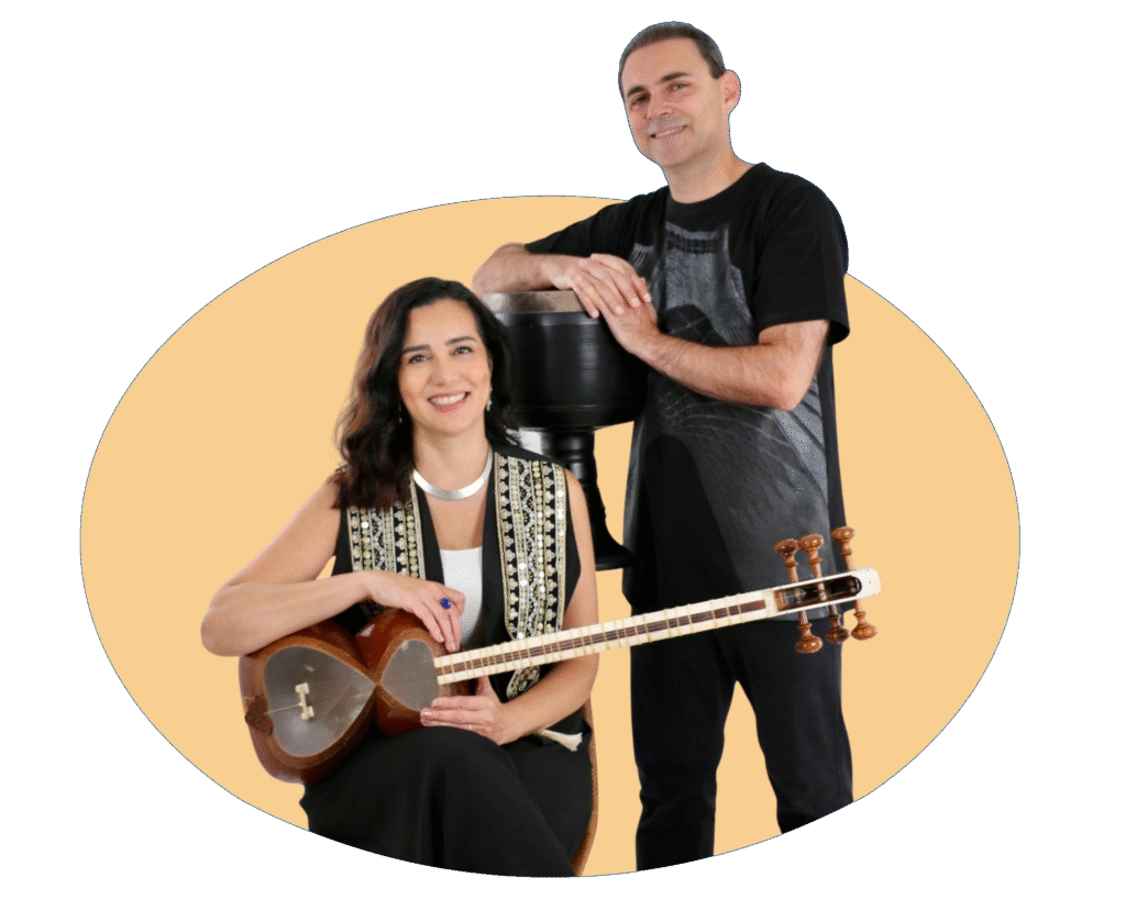 Padideh Ahrarnejad is a composer, musician, and instructor of Tar and Setar with more than 30 years of experience in this field. She graduated from the Conservatory of Music at Art University. Ali Massoudi is a multi-percussionist and music teacher of Persian Instruments such as Handpan Instrument, Darbuka Drum, Cajon, Daf, Bendir, and so on.